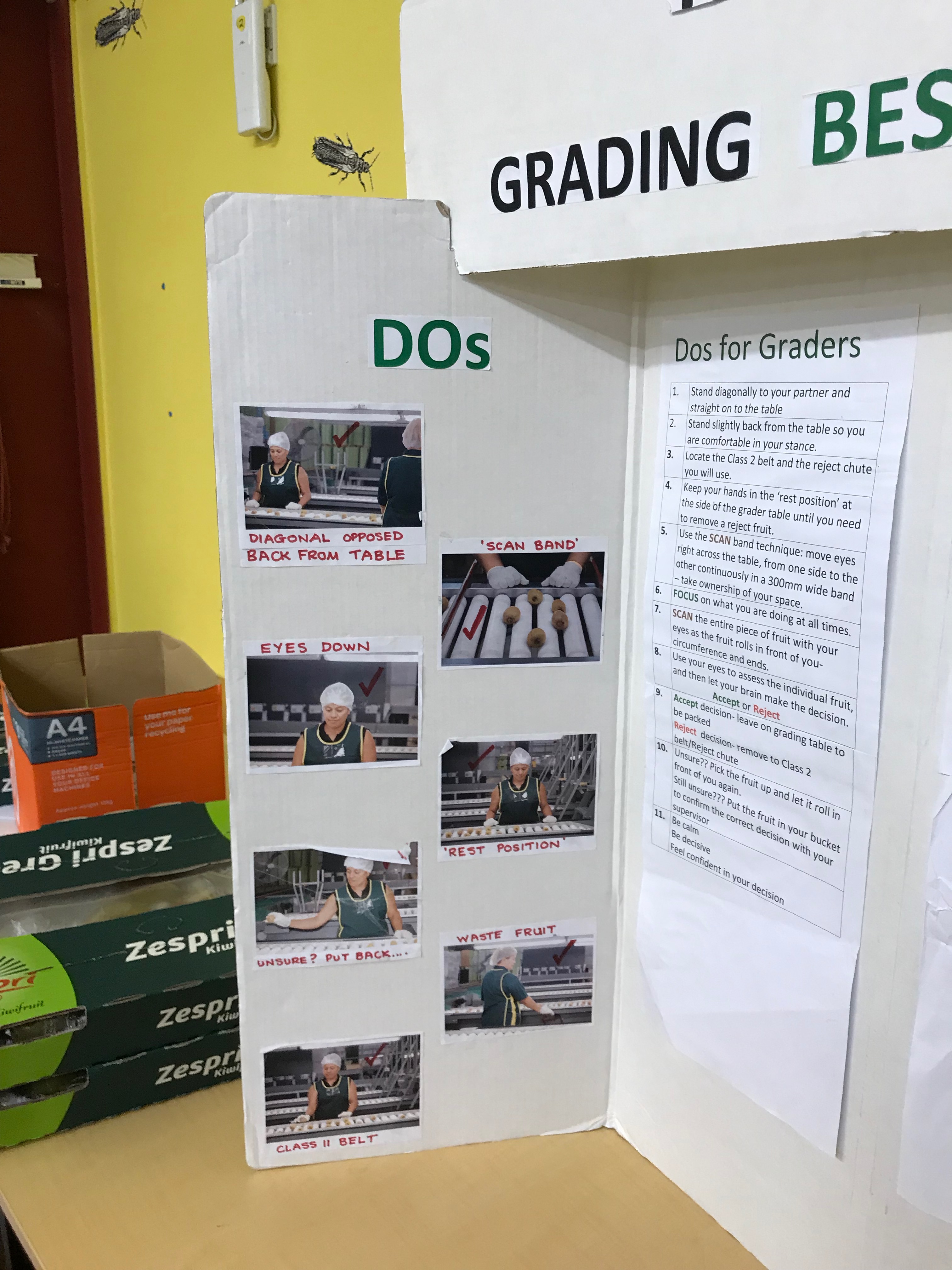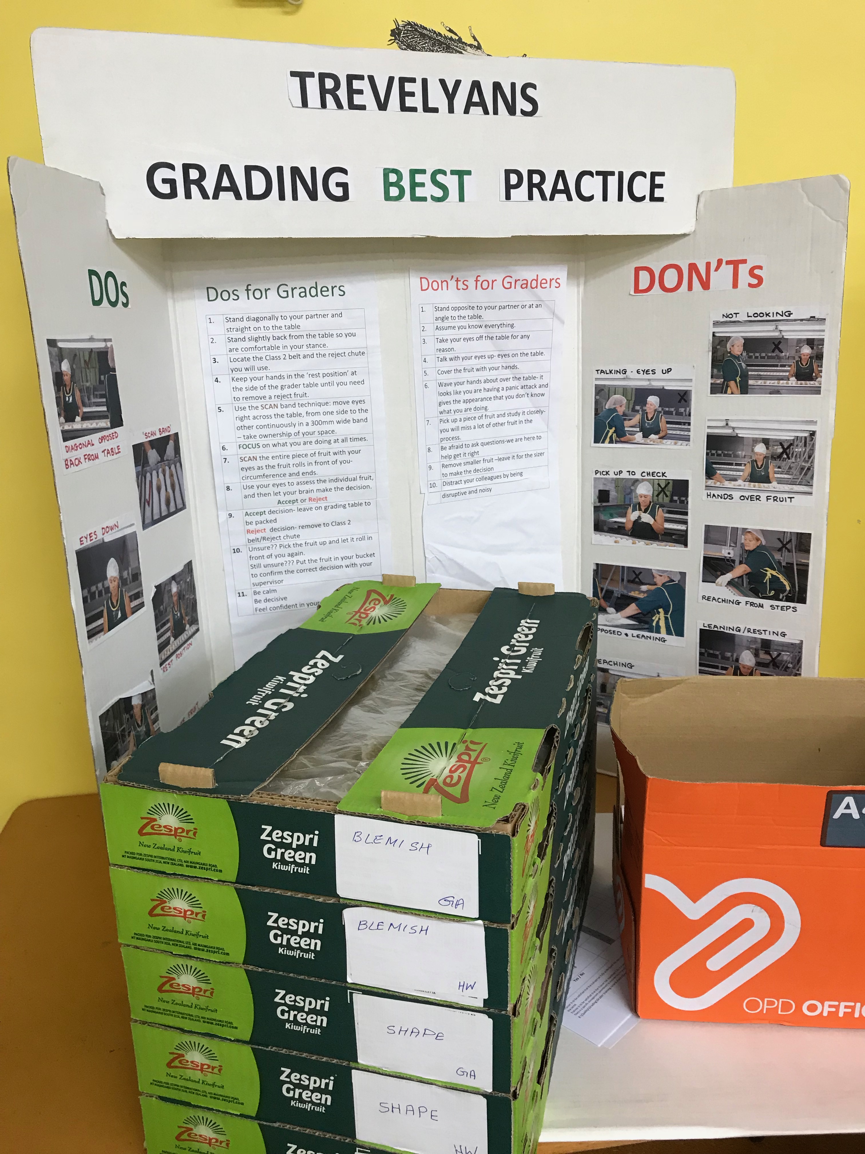 今早6:30起床準備早上8:30Trevelyen包裝工廠的面試,我選擇Grader(水果分級)的工作,朋友選擇Packer(水果包裝),他們沒有職前訓練,我們倒是被訓練了兩三小時,分類好難喔!看起來都模擬兩可。