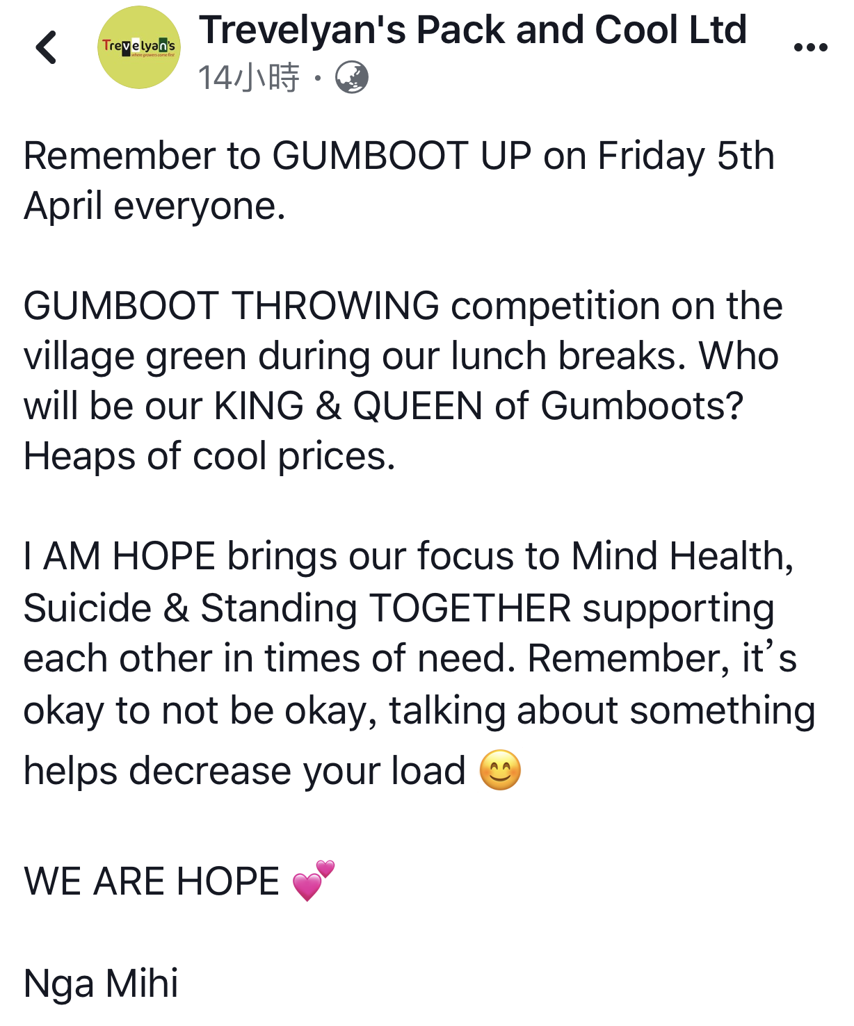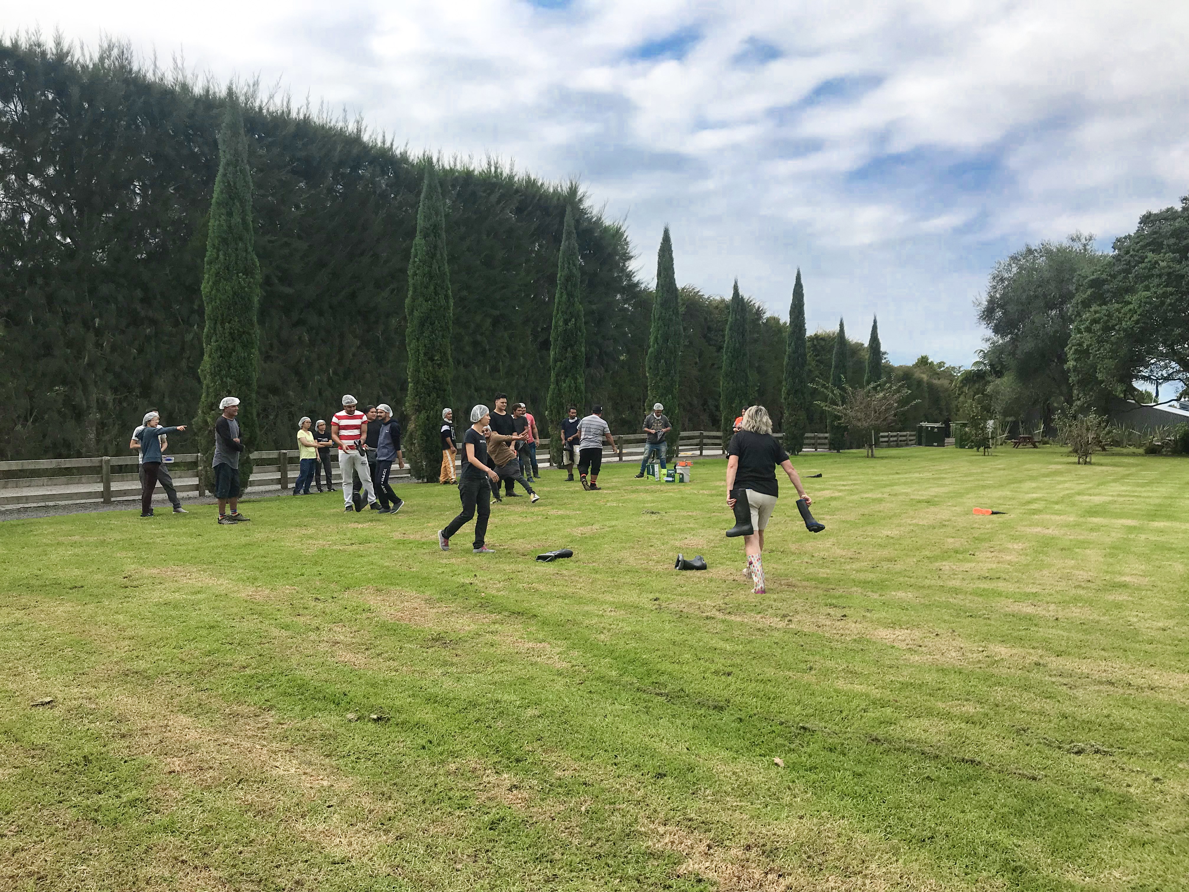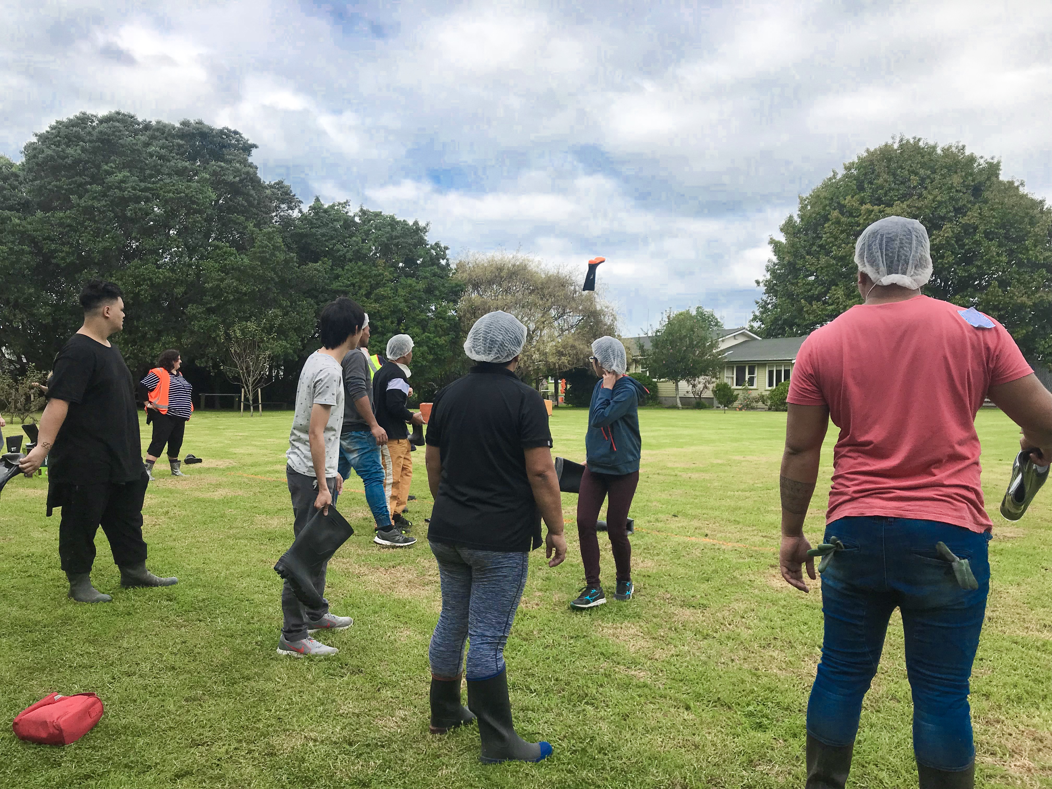 中午吃飯時間有gumboot(雨鞋)比賽,好像是紐西蘭還是Te puke的活動,雨鞋對紐西蘭來說像是國民鞋,幾乎人人都有一雙,一夥人就在草地上丟雨鞋,看誰丟得比較遠,我也好奇的去嘗試看看,雨鞋也太重了吧!不過蠻有趣的一項活動!