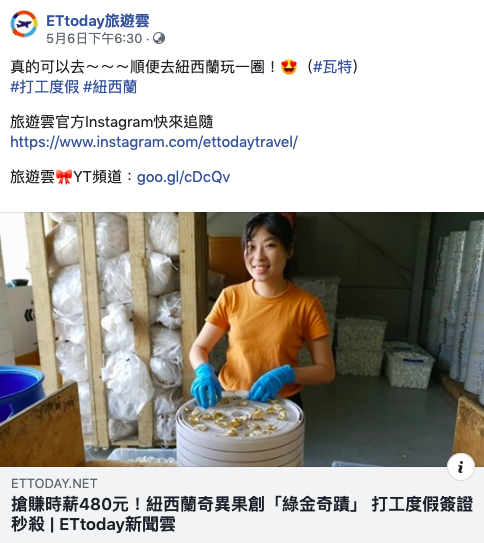 做到一半突然有一群訪客,是熟悉的聲音!然後因為我跟旁邊的香港朋友用中文聊天,其中有一位訪客突然問是台灣人嗎?我很興奮的回答:對!!!原來他們是ET today來紐西蘭針對奇異果的採訪,從實驗室、採收、包裝廠…,超級巧的,因為剛好我今天包裝廠沒上班所以中午就來實驗室,又因為剛好被分配到半戶外的工作,所以可以聊天可以拍照。
