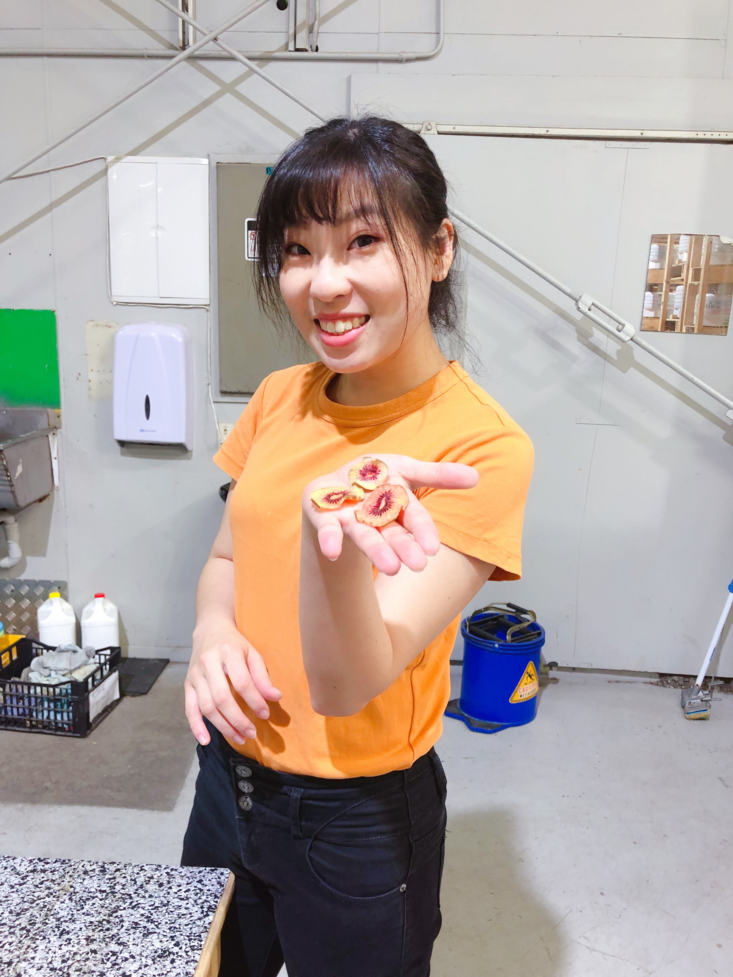 雖然做實驗的奇異果都是尚未成熟的,所以很酸,但還是很想吃吃看,於是趁大家不注意的時候偷吃哈哈,有些真的酸到爆炸,但是金色奇異果的果乾就酸酸甜甜的超好吃!!