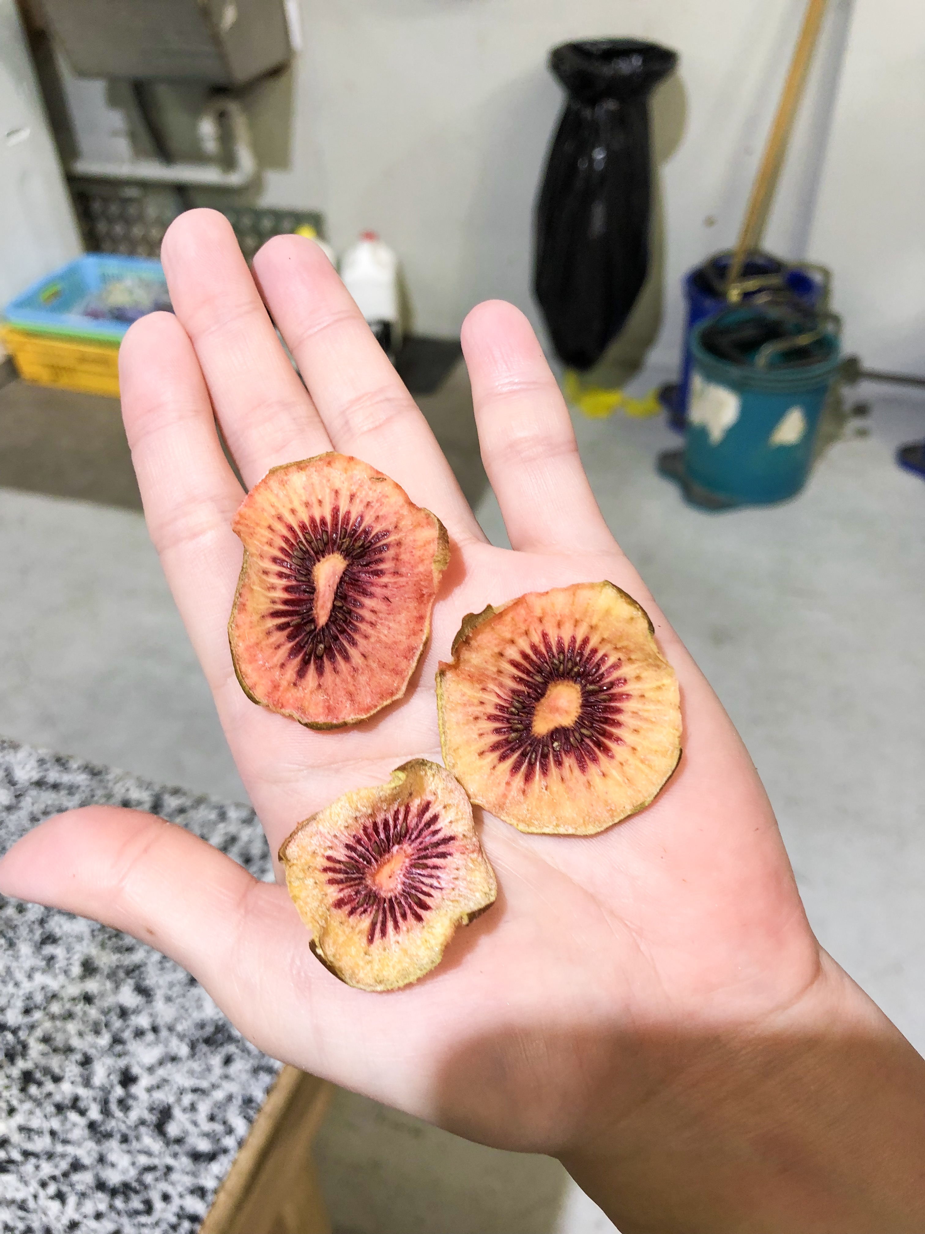而且倒掉的sample我之前就一直很想嚐嚐看了😝因為做實驗是要將奇異果切片,烘乾,所以做完實驗的Sample就是「奇異果乾」,倒著一盤盤淡淡果香的奇異果乾,能不偷嚐幾口嗎XD
