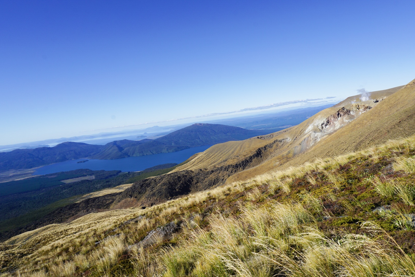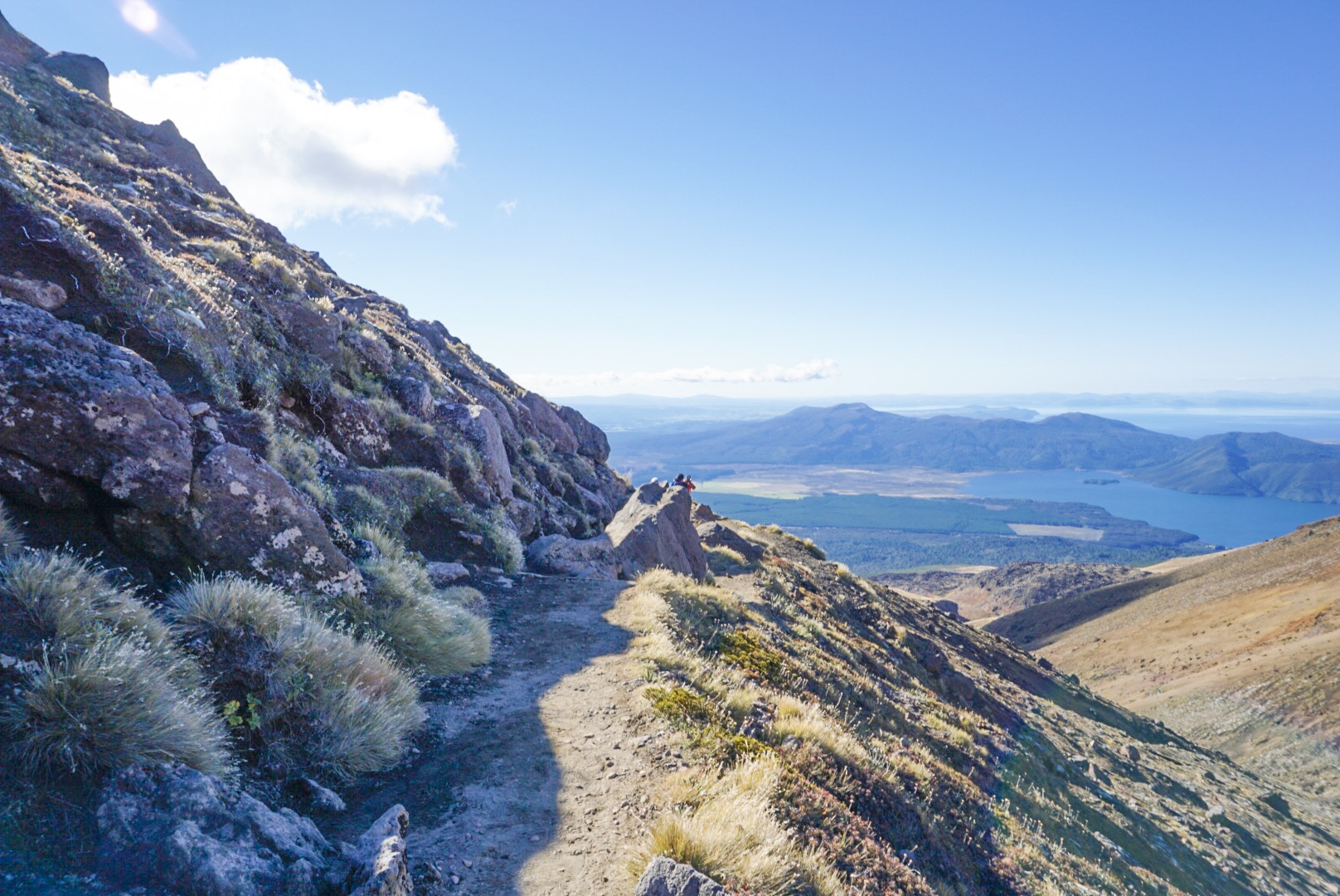 爬到山頂映入眼簾的是一個超大的藍湖,看看美麗的湖,拍拍照之後,之後就是超級天堂的路了。