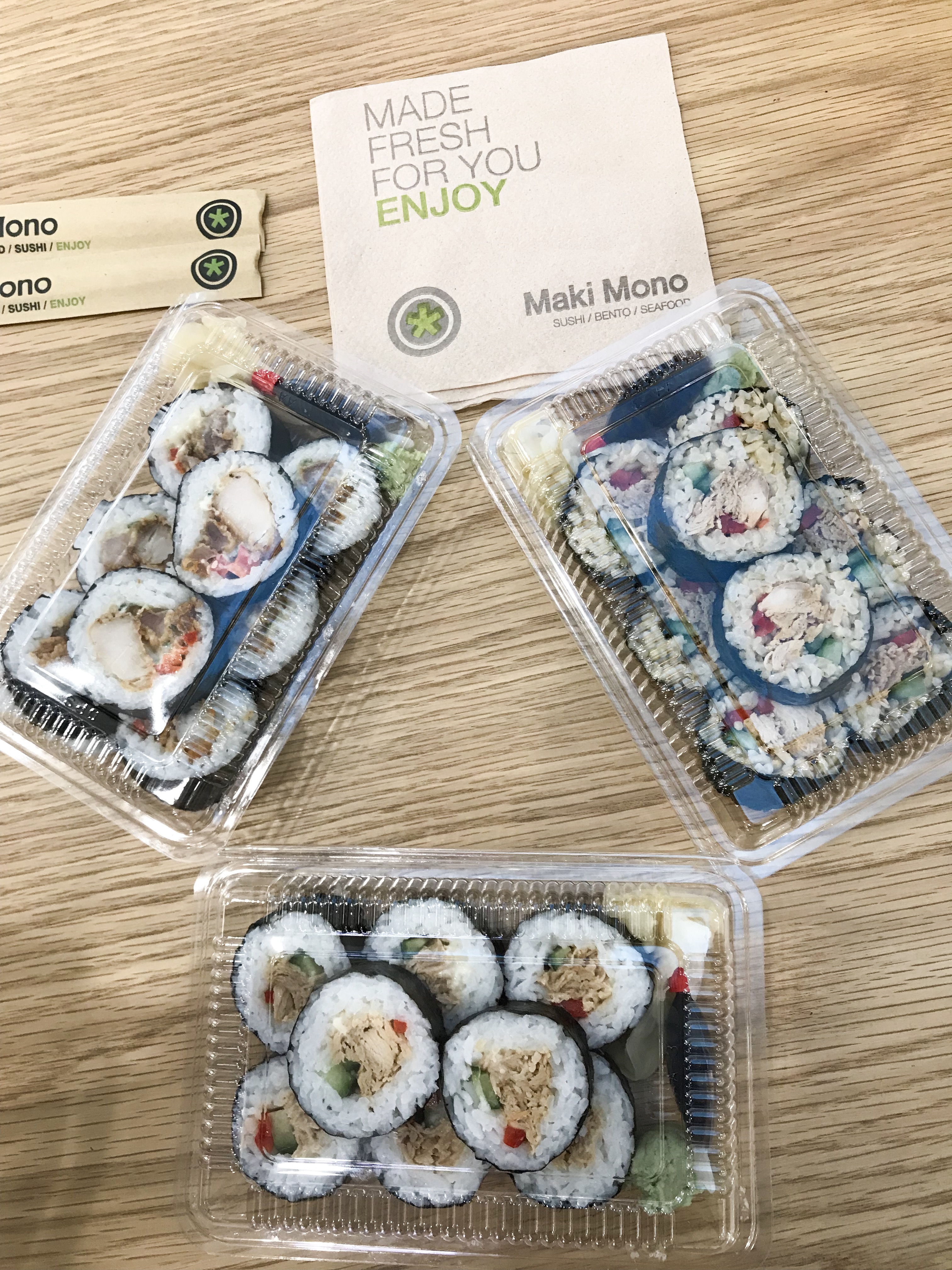 逛街逛到餓了,我們選擇吃Sushi,Bayfair裡的壽司店好好吃,而且將近關門時都會特價,原本買兩盒特價12紐幣,結果他又多送我們一盒,等於三盒才12紐幣,超級划算,之後一定要再來光顧。