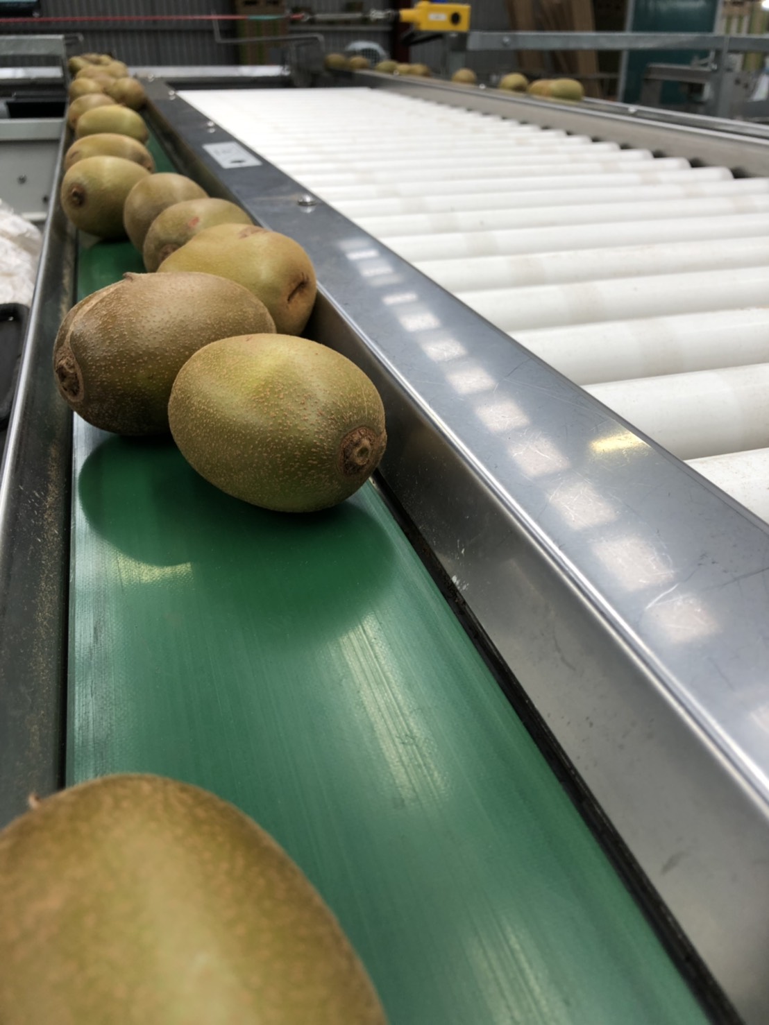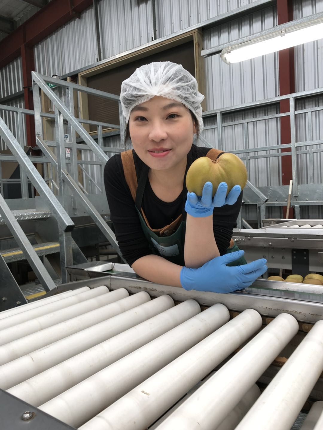 偶爾也會看到另一位可愛的QC在偷吃奇異果,他真的超強的很會抓時間吃,因為我們在選的時候常常會有很多已經熟成的奇異果必須要丟掉(因為包裝的奇異果是要硬的,剛好抓準時間運送出國,送到客戶手裡之後,奇異果過一陣子才會變軟可以吃),為了避免浪費,只好偷偷吃掉XD吃完再將果皮丟在要丟棄奇異果的桶子。