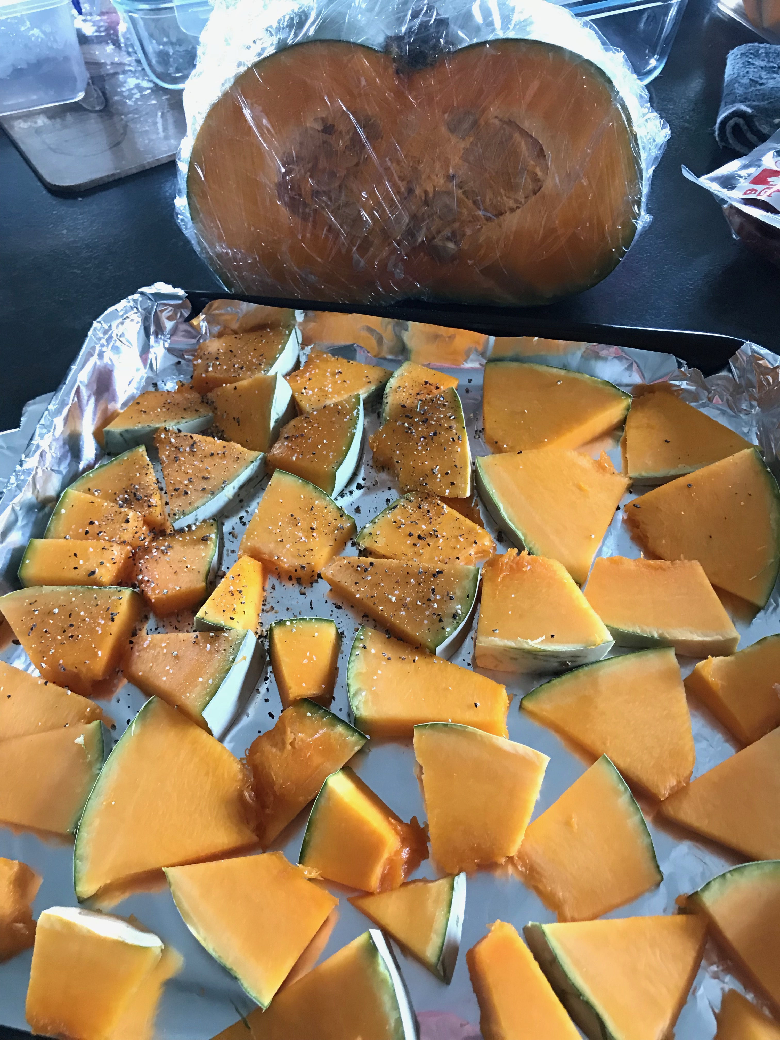 吃完早餐後距離12點出門還有一段時間,因此決定來清冰箱,把已經放很久的菜切一切,給室友煮飯(我是負責切菜跟洗碗的😂),一次切了花椰菜、高麗菜、蘑菇、蒜、洋蔥,還有一顆超大的南瓜,這是我人生中第一次切南瓜,也是人生中第一次切那麼多菜XDD