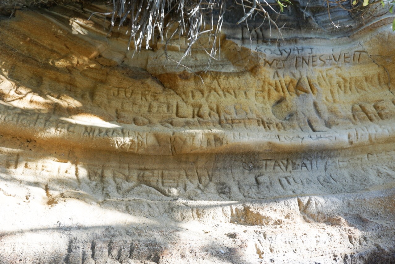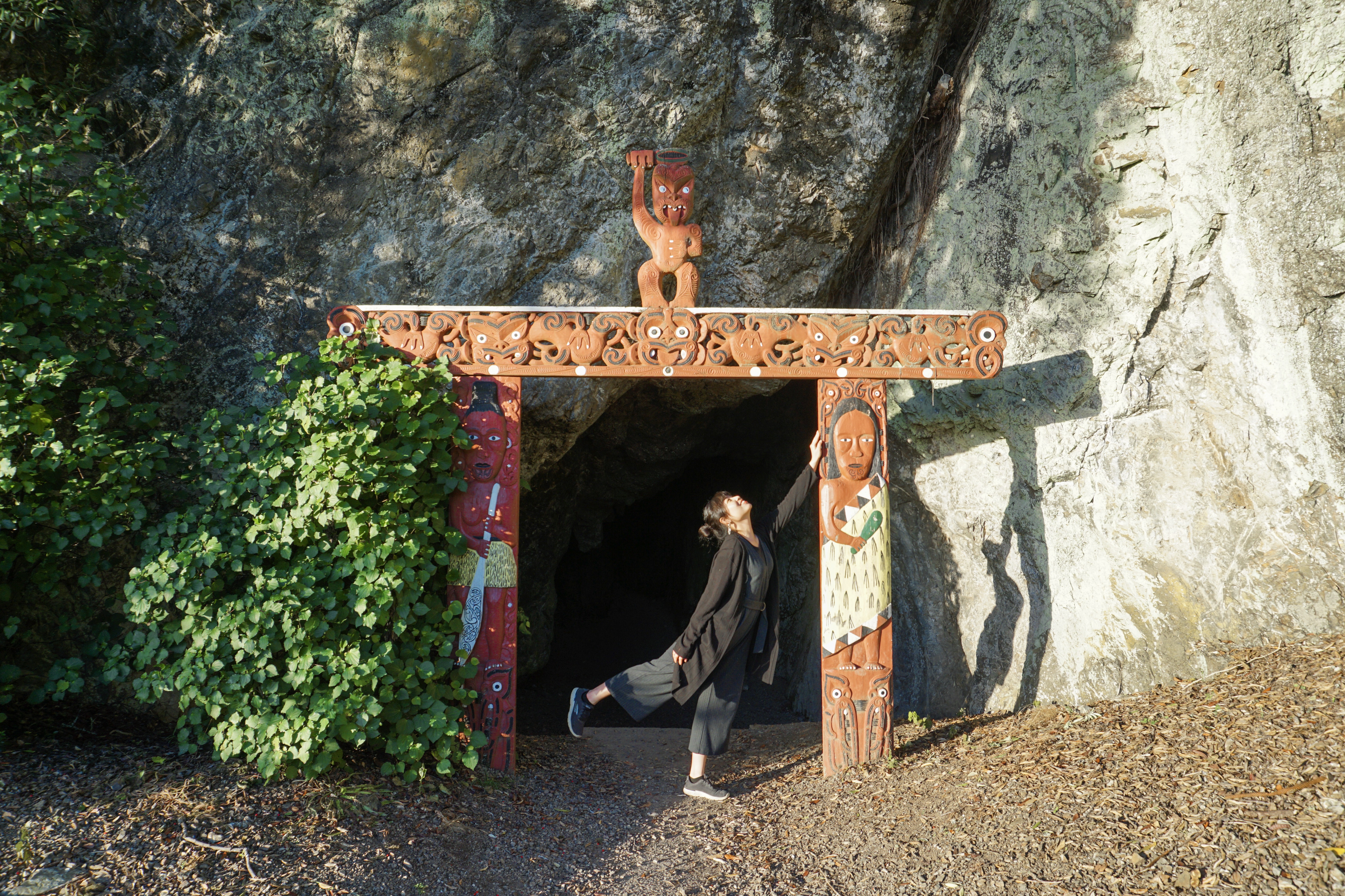 第三站:Muriwai’s cave,這個景點在著名雕像旁邊,可以停好車走這兩個景點,這個cave著名在外面有一個毛利雕像藝術,本來想說進去山洞看一下應該是一分鐘行程,結果一踏進去山洞秒傻眼,瞬間變成一秒行程,裡面什麼都沒有哈哈。