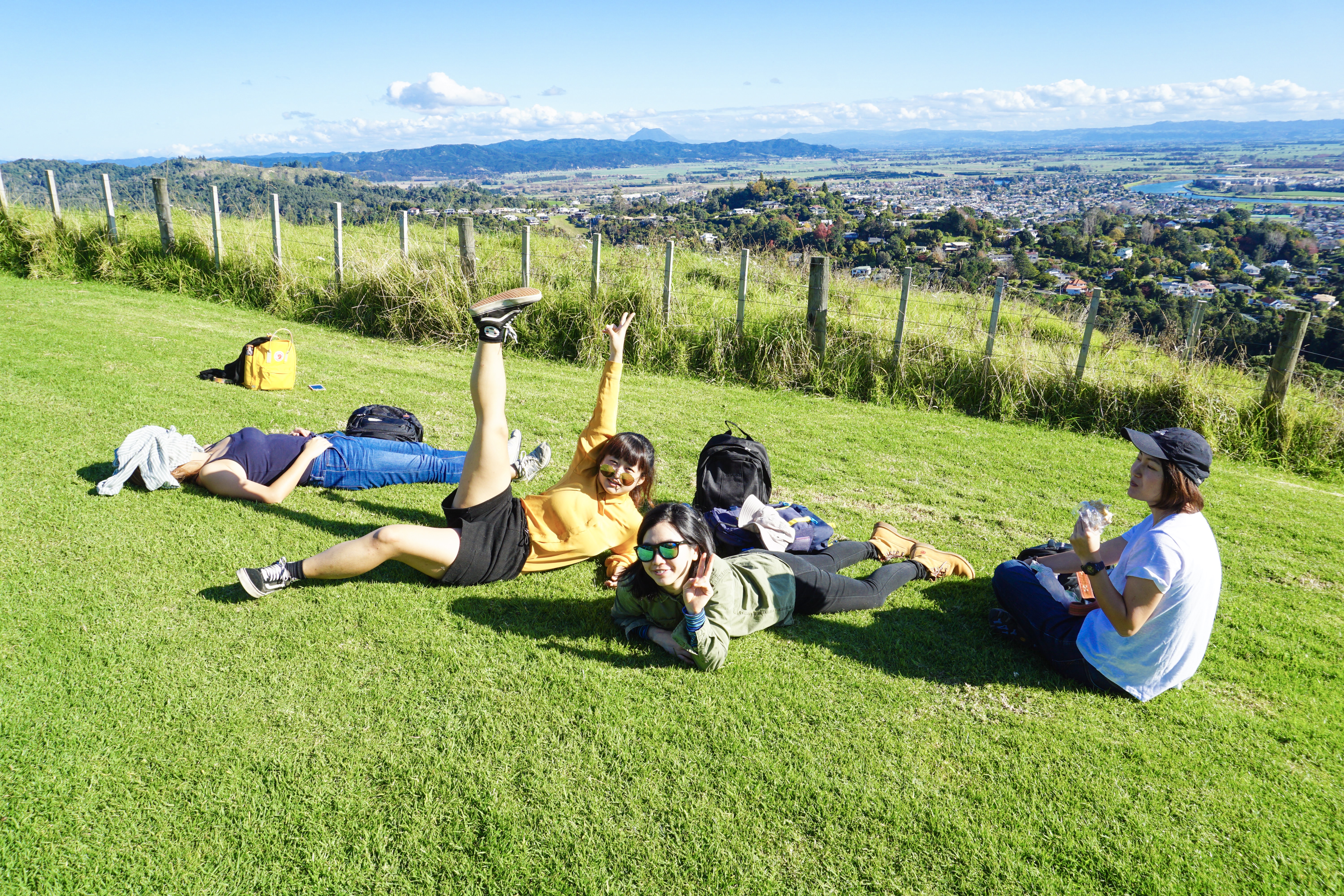 爬到終點附近有一個觀景台可以看,躺在一大片草原,曬著太陽,遠眺市區海邊美景,太舒服了❤️