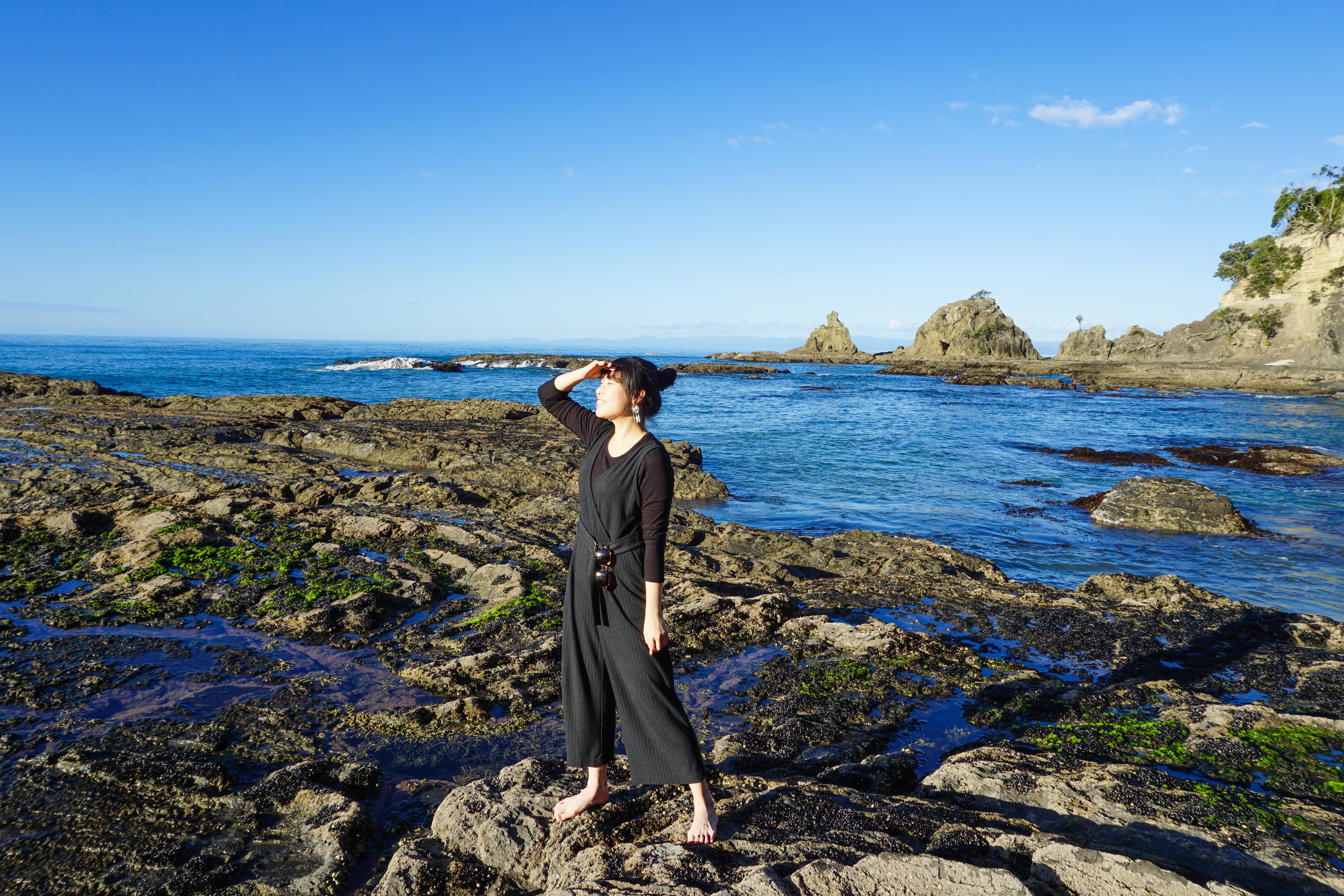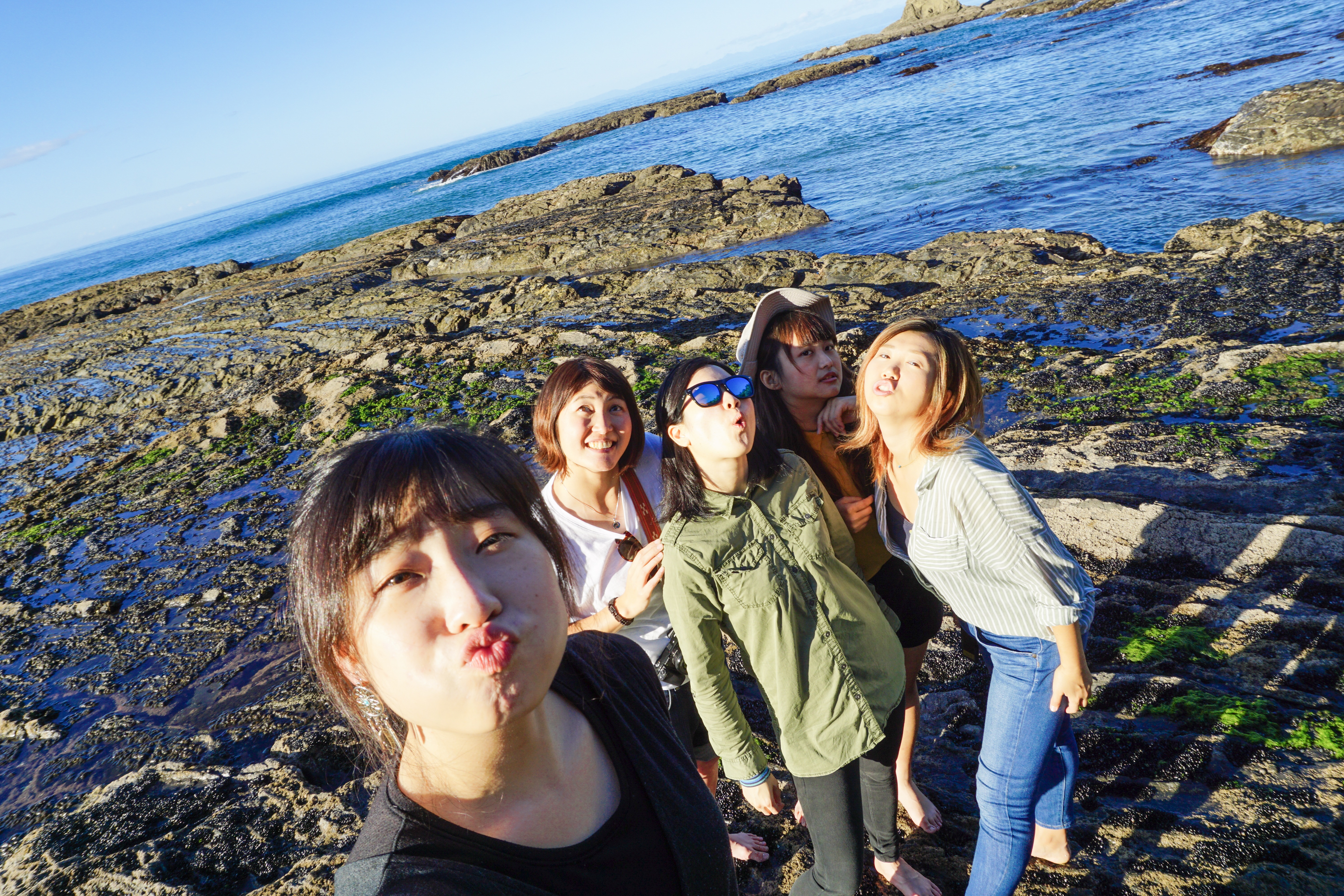 我們時間抓的剛剛好,剛好退潮時間走到岩石,但白痴的我不知道是發什麼神經竟然叫大家一起脫鞋子去走岩石,大家瘋狂喊痛,日本朋友也一直叫「一代、一代」,快笑死我了😂