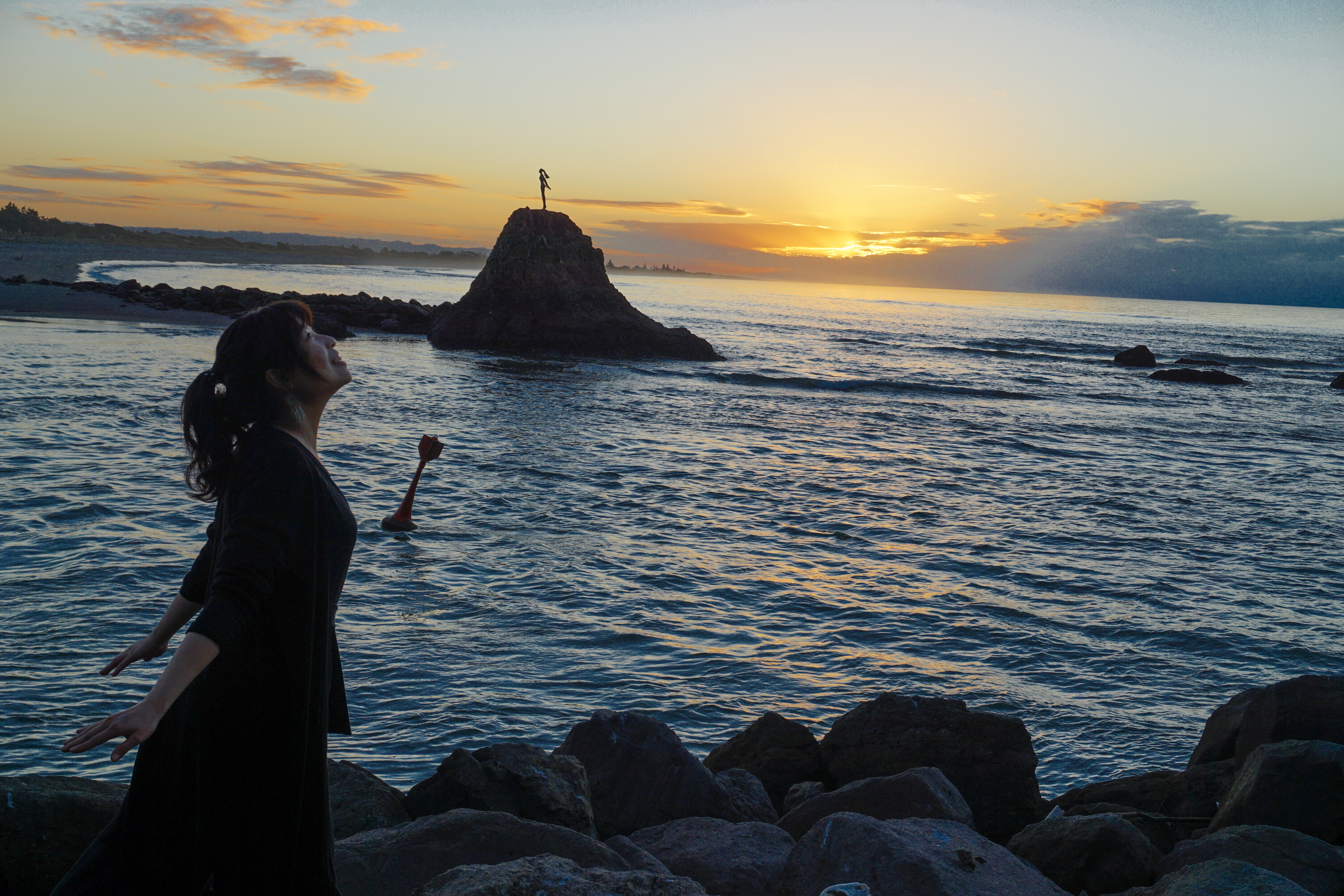 第四站:Whakatāne Heads,來到今天行程最終站,是在海邊著名的一座女人雕像,在海邊有大草坪可以坐在海邊邊吃東西邊看夕陽,任何時刻看都好美喔!